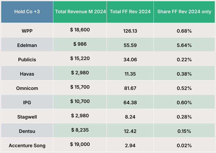 This report estimates that the top 29 oil majors spent approximately $6.97 billion in 2024 on media, creative, and PR, generating an estimated $3.03 billion in billings for the major global marketing holding companies plus Edelman, Accenture Song and Stagwell.